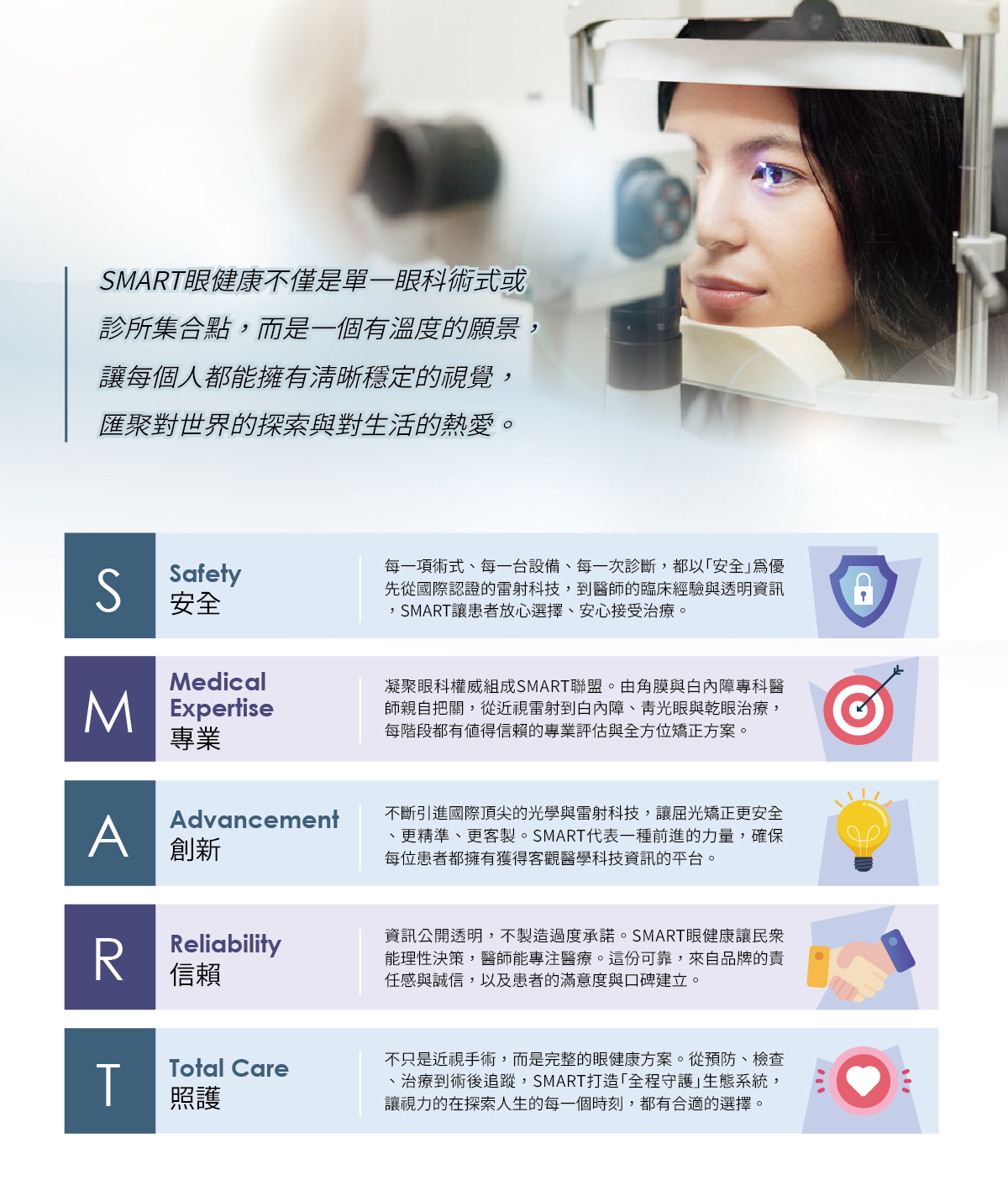 SMART眼健康解決方案|近視雷射手術|白內障手術|青光眼眼壓追蹤|乾眼治療
